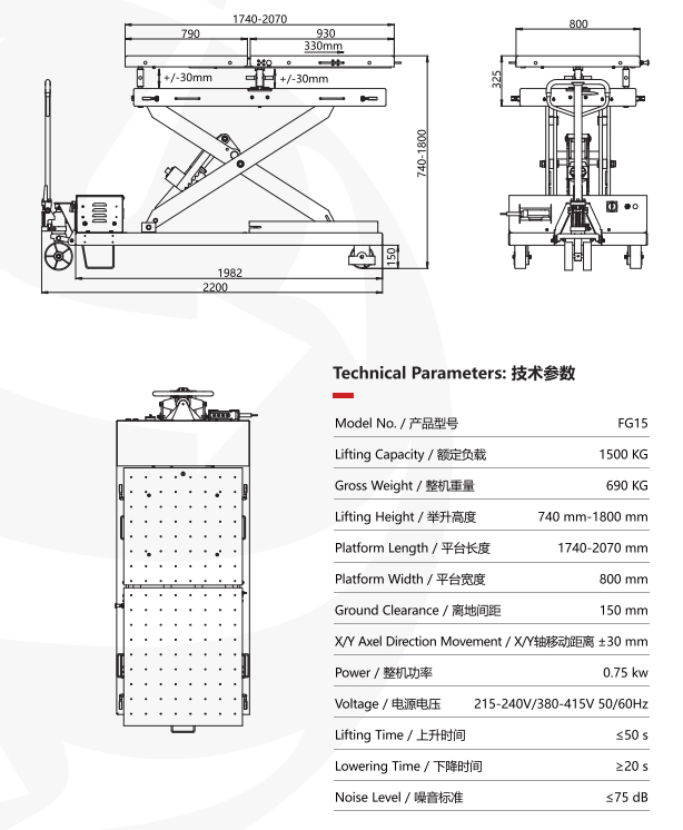 Chiều dài bàn nâng: 1.740 – 2.070 mm